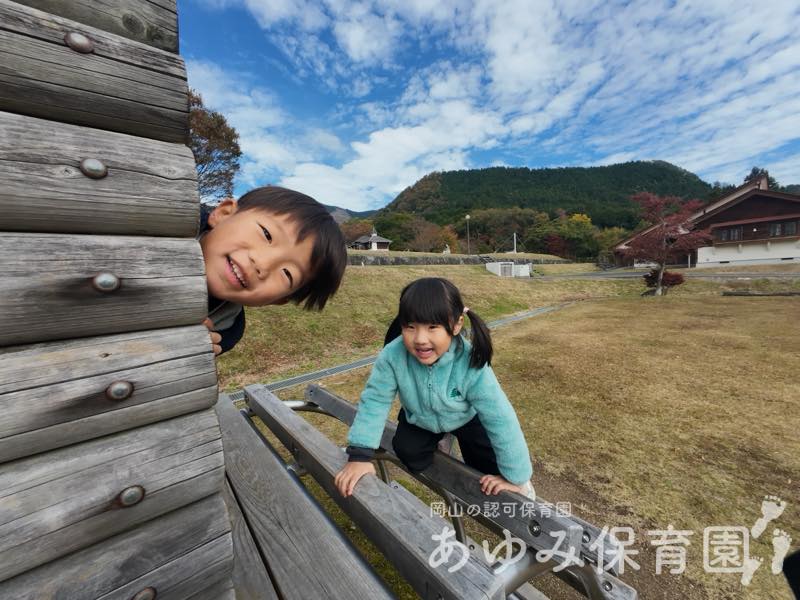 あゆみ日記 11月のあじさい組 山のキャンプ 2025年12月23日 by Web管理人 11月のあじさい組の山のキャンプです。奈義町に行ってきました。 いもほりや山の散策、広い公園や山の駅に行ったりお天気も良くて、いっぱい遊ぶことができました。 Web管理人